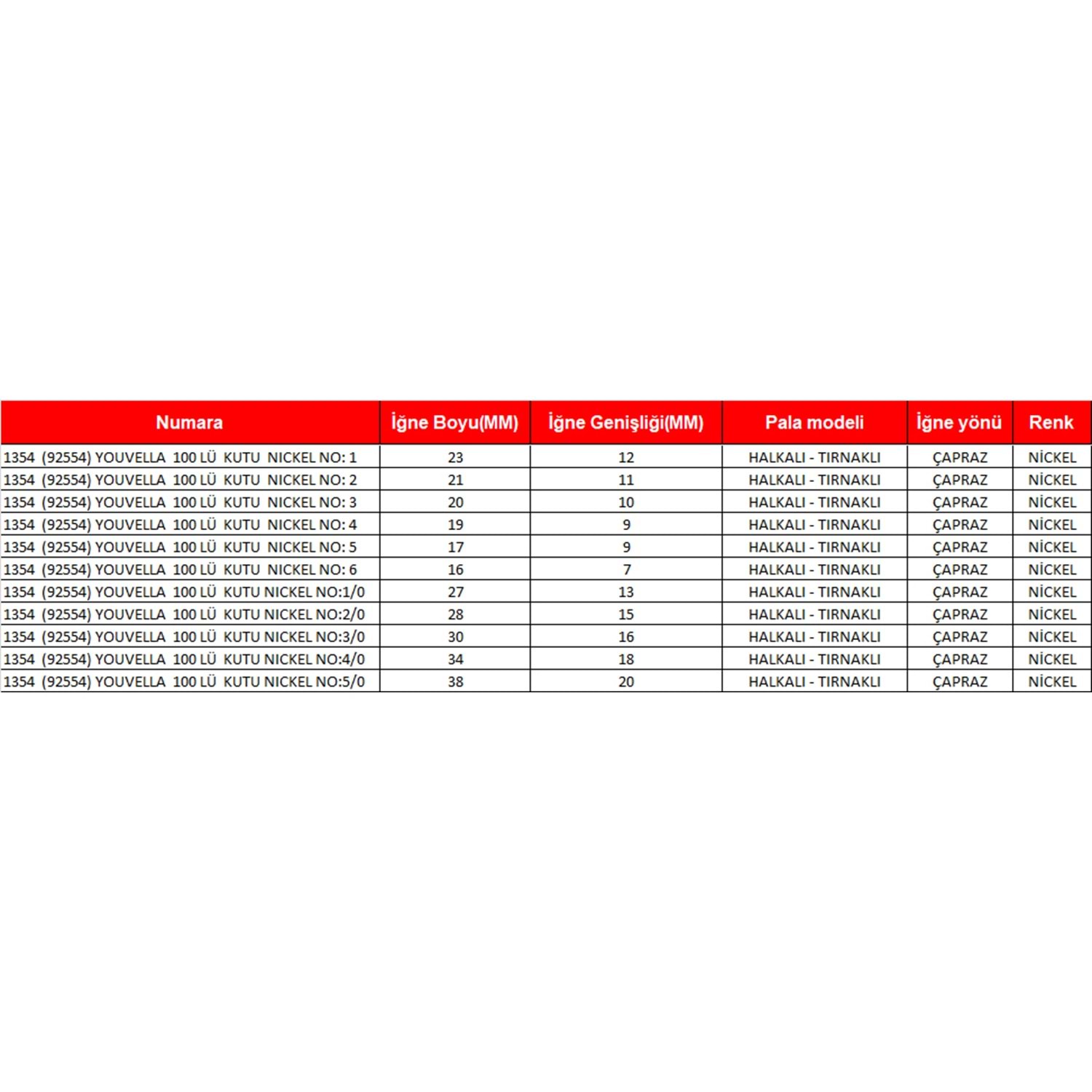 İğne yönü çapraz olup papağan gagalı ve nikel renktedir.Sağlam ve güçlü yapısı bulunmaktadır.