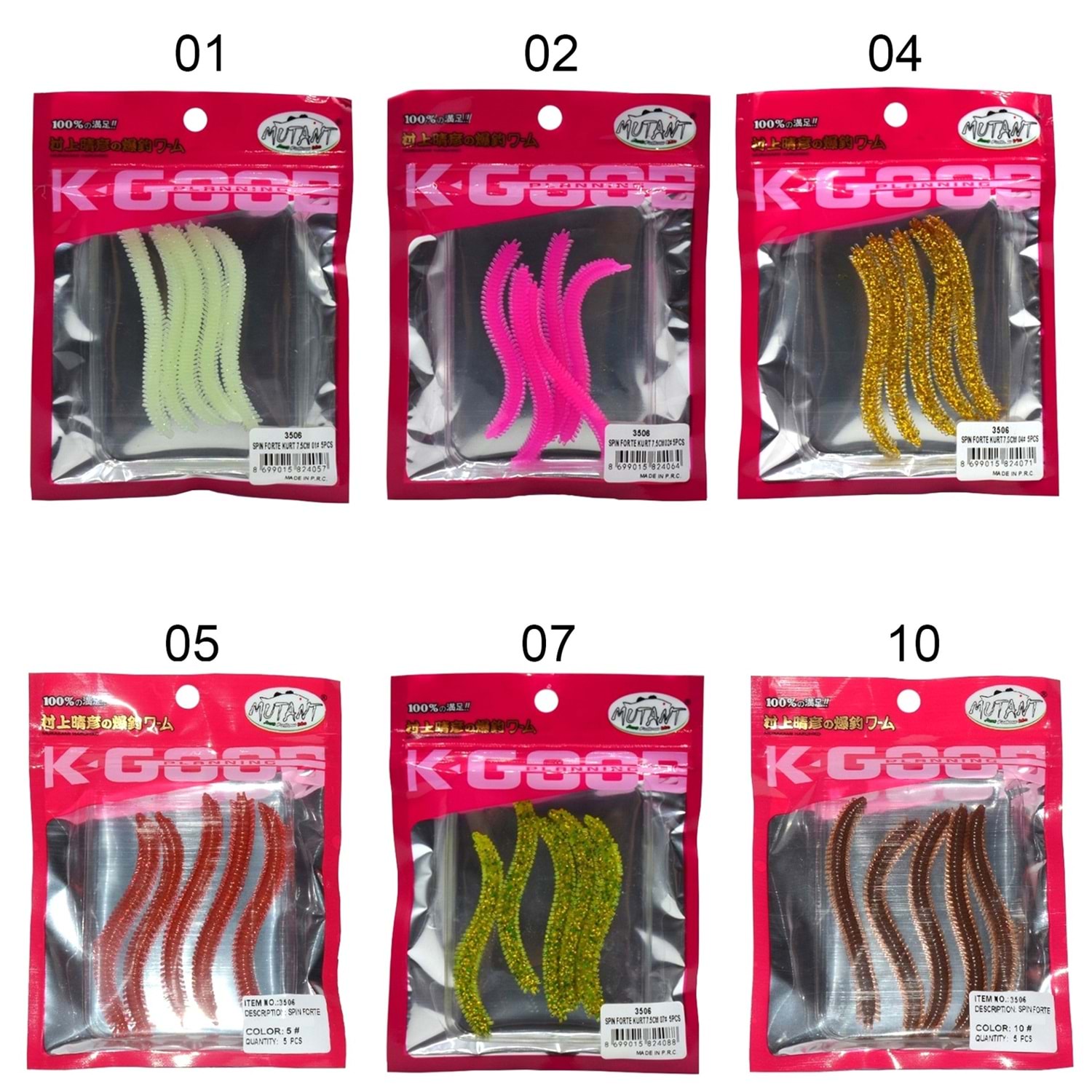 Mutant 3506 Spin Forte 7.5cm Aromalı LRF Silikon Suni Yem 5'li Set Özel tasarım silikondan imal edilmiştir. Kurtçuk suya atıldığında kendi ekseni etrafında dönerek gerçeklik görünümüne sahiptir. Kopmalara karşı dayanıklıdır. Renkleri sayesinde avının dikkatini çeker ve onu cezbeder Genellikle olarak dişli balık avlarında kullanılmaktadır. Özel PVC pakette satılmaktadır.